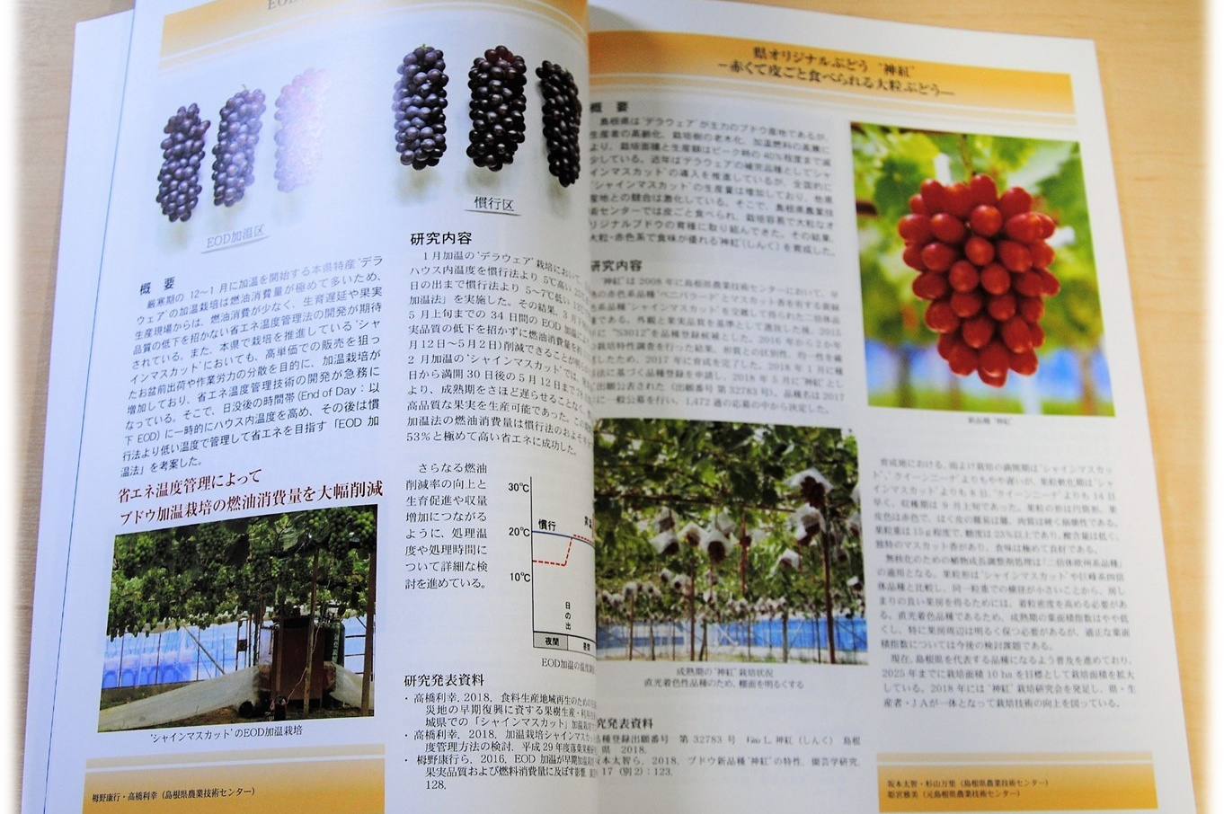 2019年9月15日~17日に島根大学で開催された園芸学会令和元年度秋季大会にあわせての記念刊行です。島根大学の実行委員会メンバーでレイアウトや編集を行い、研究トピックスの大部分は島根県農業技術センターの研究者の皆様より寄稿いただきました。島根県内の園芸学研究者の総力結集品です。