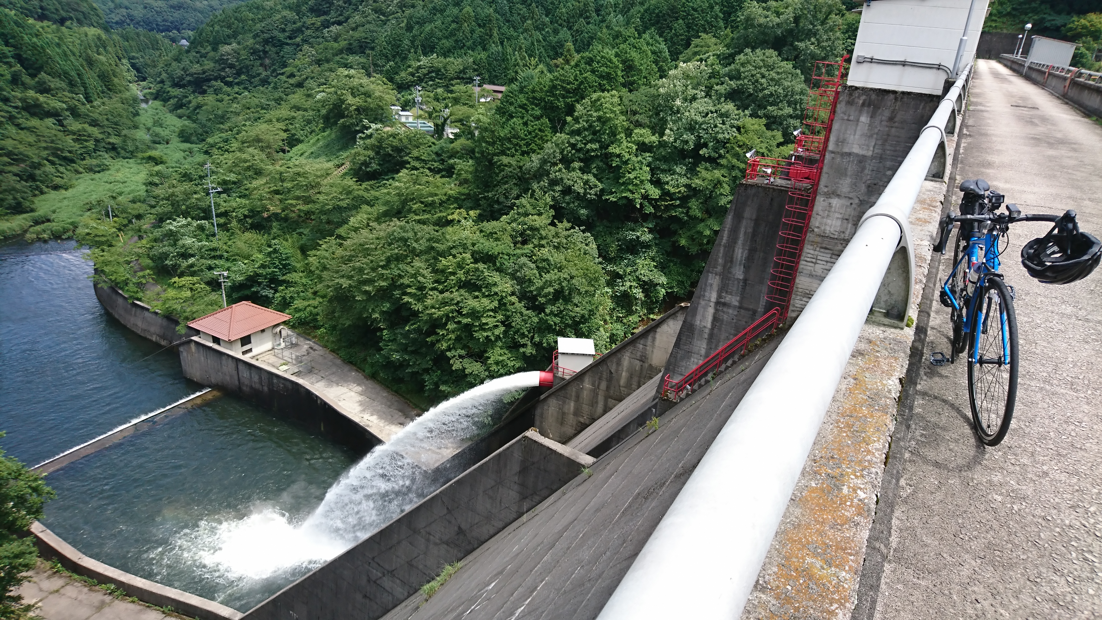 天端から下流側 施設の点検中?のため,ココから放水