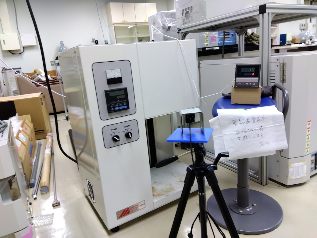 Equipments Diffusion pump This is a pump. read more Equipments Centrifuge This is a centrifuge. read more Equipments Kanthal furnace This is an electric furnace (1100°C). read more Equipments Powder X-ray diffraction (Ueda lab.) This is a powder X-ray diffractometer. read more Equipments Super Kanthal furnace This is a super kanthal furnace. read more Equipments Arc-melt furnace This is an arc-melt furnace. read more Equipments Press machine This is a press machine. read more Equipments Spatter (Ueda lab.) This is a spatter. read more Equipments Glovebox This is a glove box. read more