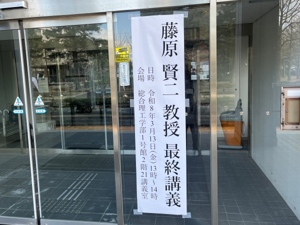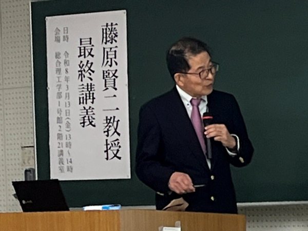 島根大学総合理工学部の藤原 賢二 教授の最終講義が行われました。藤原先生は私と専門分野こそ異なりますが,私が2000年に着任して以来,長きにわたり様々な面でお世話になりました。ご退職は寂しい限りですが,これまでのご尽力に深く感謝するとともに,今後のご健康とご多幸をお祈り申し上げます。
