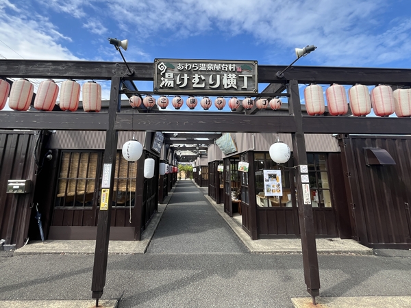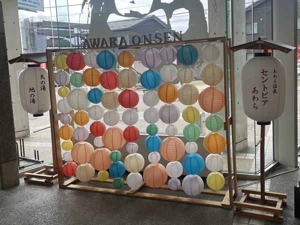 田園地帯の中にある温泉街ですが,温泉街の中心「あわら温泉湯のまち広場」には足湯や飲食店街「湯けむり横丁」などがあり,楽しそうです。ただ,昼は湯けむり横丁が開いてなく残念でした。日帰り入浴施設「セントピアあわら」は,モダンな外観で,施設内もとてもきれいです。お湯もやわらかい感じです。
