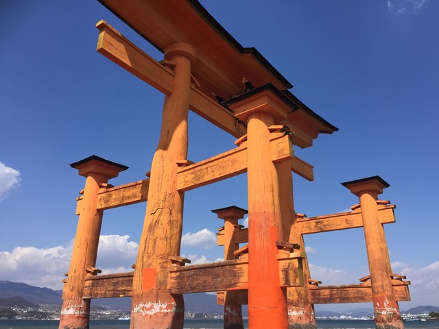 宮島口桟橋からフェリーに乗って約10分,瀬戸内海国立公園にある。広島湾の海上に立つ社殿が美しい「厳島神社」は593年に佐伯鞍職により創建され,1168年に平清盛によって寝殿造り様式に造営されたと伝えられる。 海上に立つ朱の大鳥居は宮島のシンボル。『安芸の宮島』は陸奥の松島,丹後の天橋立と並び日本三景として有名。1996年に世界文化遺産に登録された。「神の使い」として大切にされてきた鹿や,「焼き牡蠣」「揚げもみじ」と言ったグルメも有名。