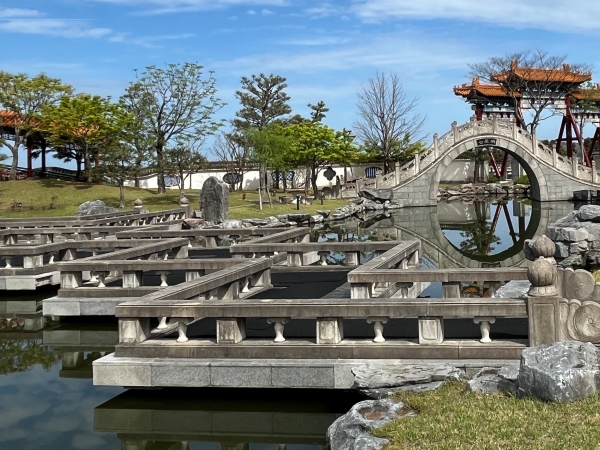 JR松崎駅から車で5分程度に位置する中国庭園。鳥取県と中国河北省の友好のシンボルとして1995年に開園した。歴代中国の皇帝が愛した皇家園林方式の中国庭園が再現されている。東郷湖と周囲の山々を取り込んだ壮大なスケールが特徴。総面積10000平方メートルと中国庭園としては日本最大級の規模。
