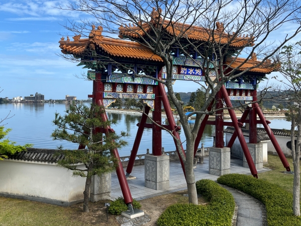 小さく,とても静かな温泉街です。龍鳳閣は温泉街から少し離れ,近くの中国庭園「燕趙園」とリンクしている水着着用で入る健康増進施設です。露天もあり,東郷湖を見ながら入浴できます。燕趙園は異国情緒あふれる建物が楽しめます。東郷湖の景色が素晴らしいです。