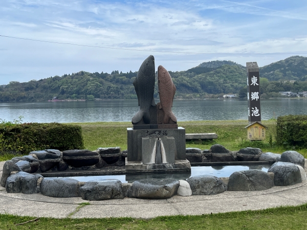 ![]() 東郷湖とアベック鯉の彫刻 |