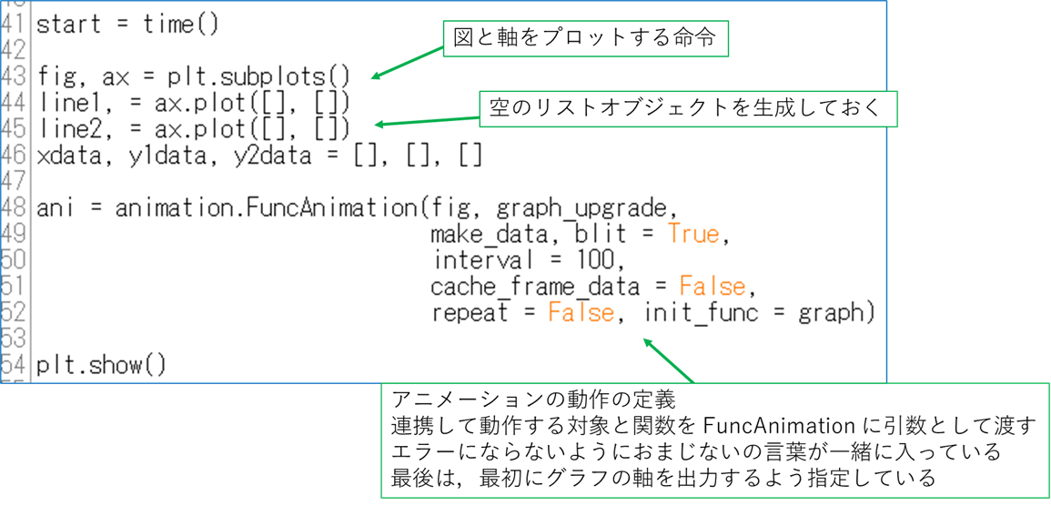 matplotlib では最初にグラフの枠組みとなる描画領域などのオブジェクトを生成し,続いてオブジェクトの要素であるグラフの線や凡例などを追加していくという仕組みになっています.