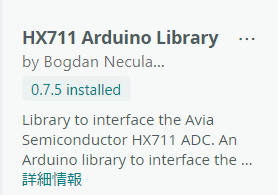 表示されたライブラリのリストをスクロールして HX711 が見つかったらインストールします.