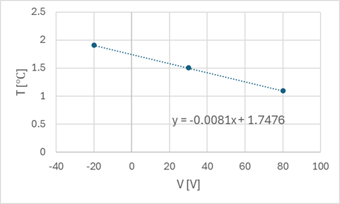使用する温度センサの S-8100B というトランジスタは添付の書類にあるように,以下の温度と電圧の関係が分かっています.