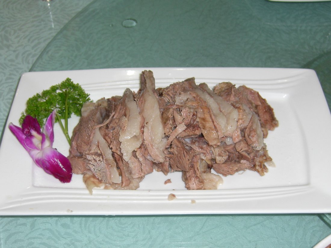 寧夏では一般的に,「灘羊」という種類の綿羊が飼育されています。この灘羊,羊独特の臭みがほとんどなく,食べやすいと評判なのですが,それは食用とされているのが,1歳以下の去勢された羊だからだそうです。そのため,肉質がやわらかく,また放牧が禁止されているので舎飼いのため,脂肪のたっぷりついたお肉となっています。ゆでて,酢をつけて食べるのが一般的です。