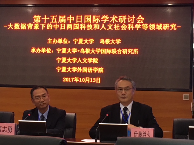 平成29年10月13日(金),寧夏大学において第15回日中国際学術セミナーが開催され,基調報告3本,分科会発表10本,計13本の学術報告が行われました。本学からは,保母武彦顧問,伊藤勝久所長,関耕平副所長,田中奈緒美研究員が参加しました。